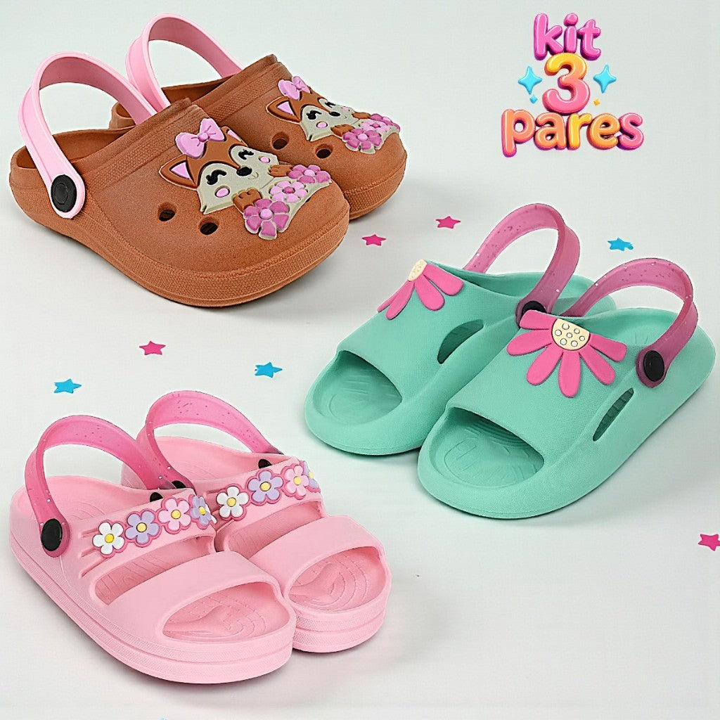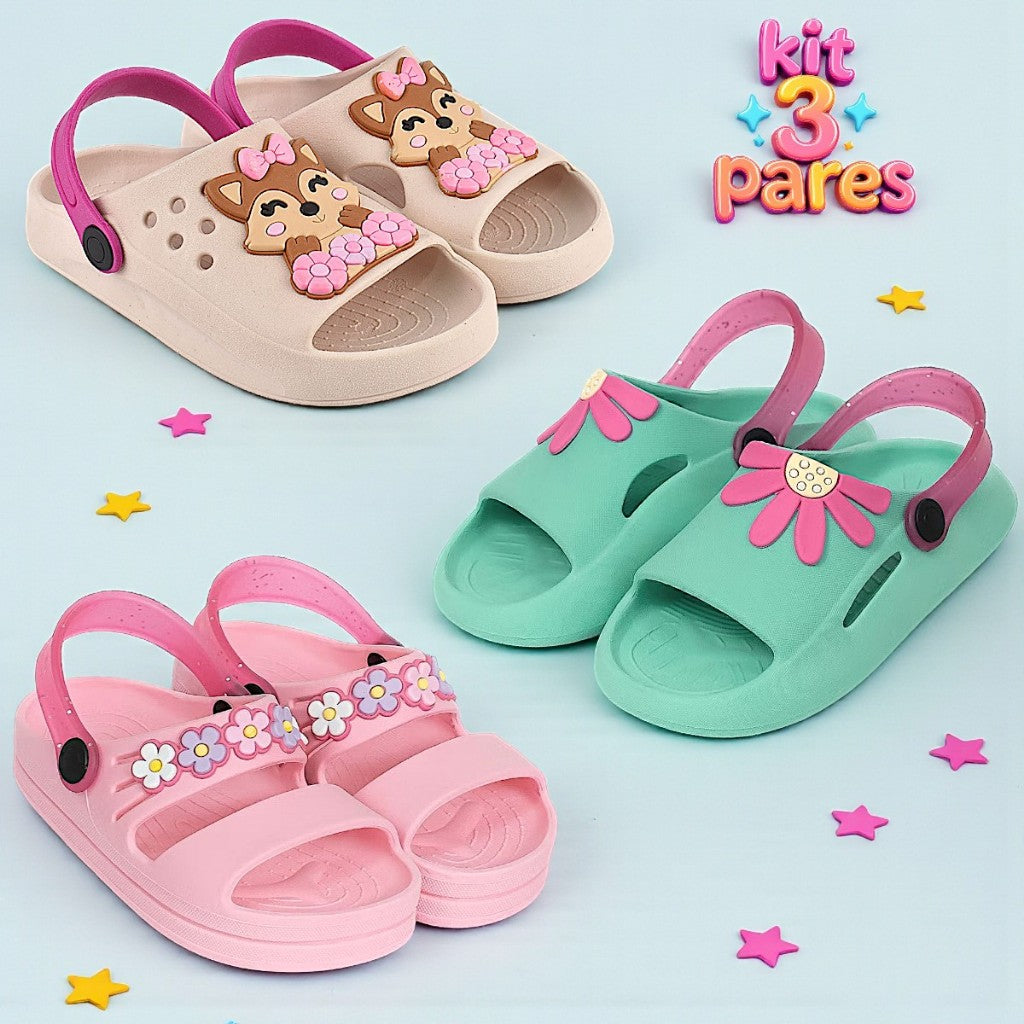 Kit com 3 Pares de Sandálias Papete Infantil – Conforto, Segurança e Estilo para o Dia a Dia! 👣